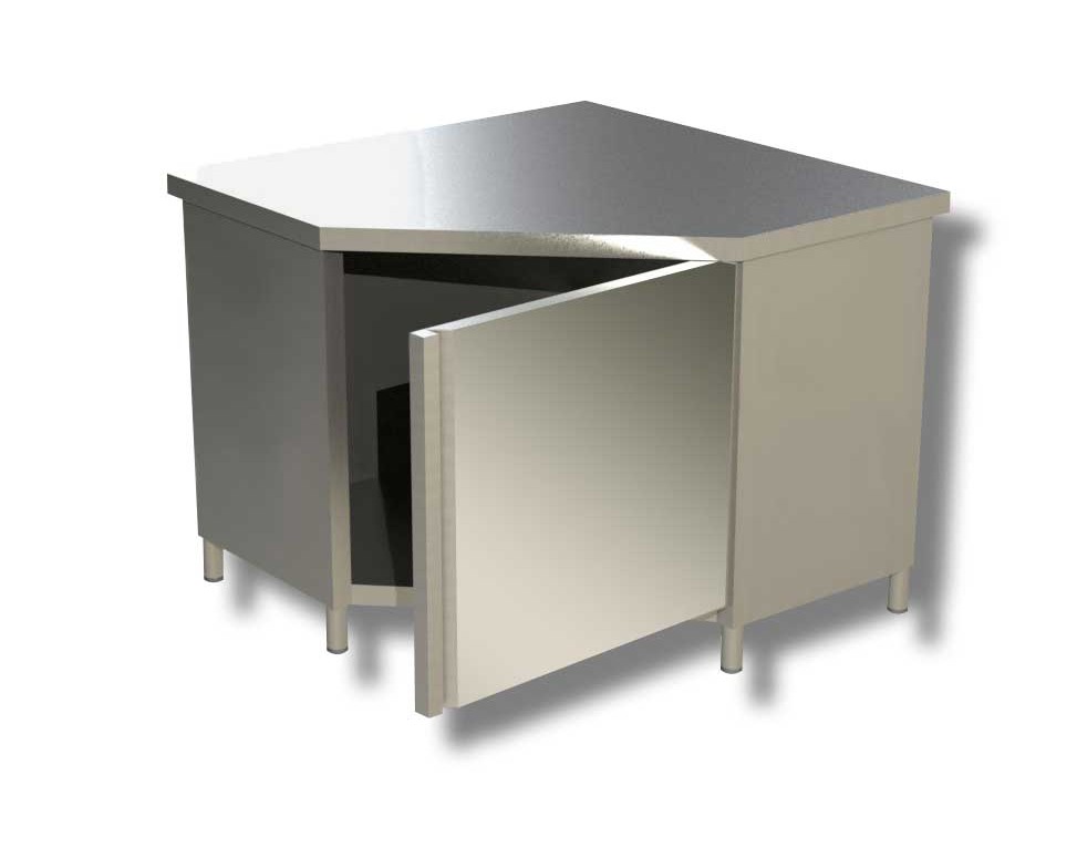 Meuble bas d'angle inox 430 avec étagère intérieure et 1 porte battante