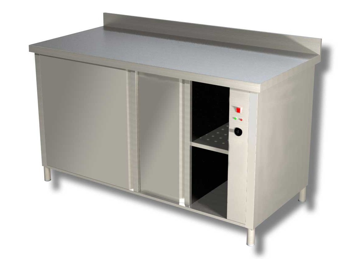 Quels sont les avantages majeurs de ce meuble de stockage restaurant ? Il assure une utilisation efficace de l'espace avec ses portes coulissantes, éliminant les problèmes d'encombrement habituels dans les cuisines occupées. De plus, son dosseret intégré offre une protection contre les éclaboussures.