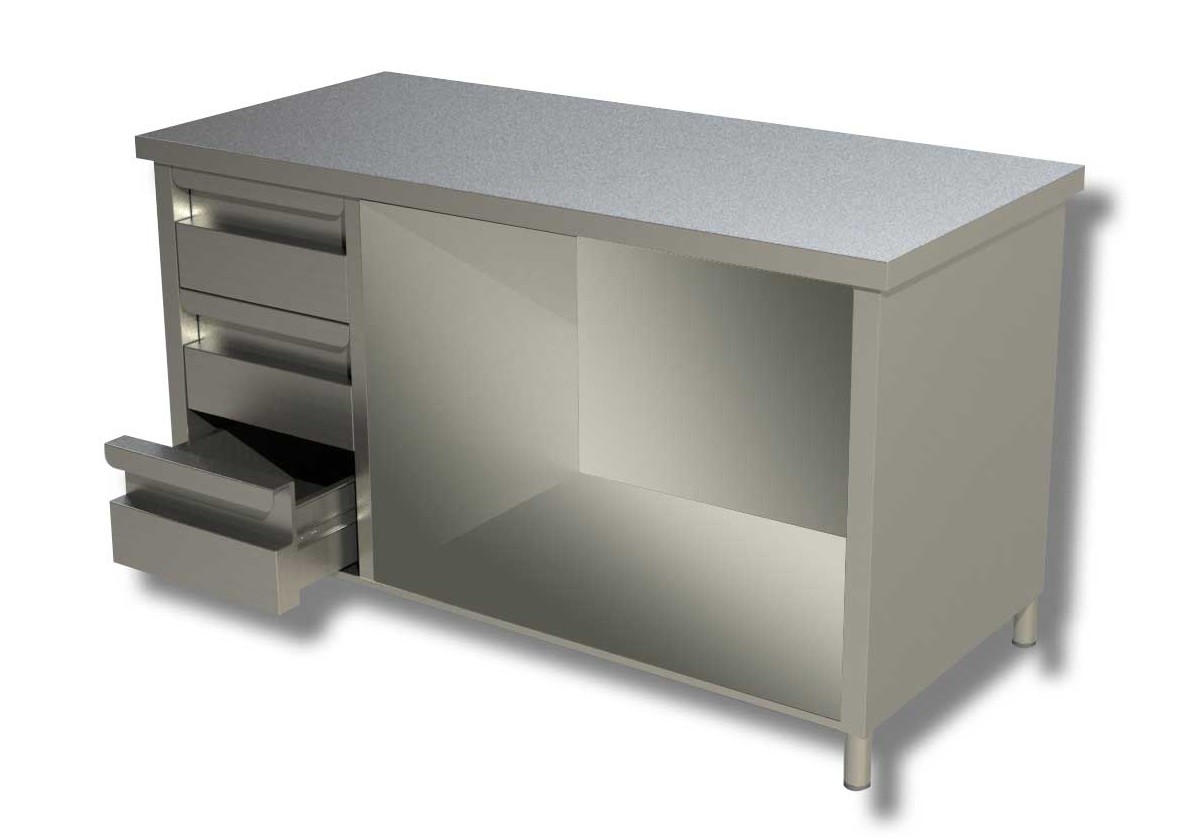 Meuble bas inox 430 avec 3 tiroirs et étagère intermédiaire