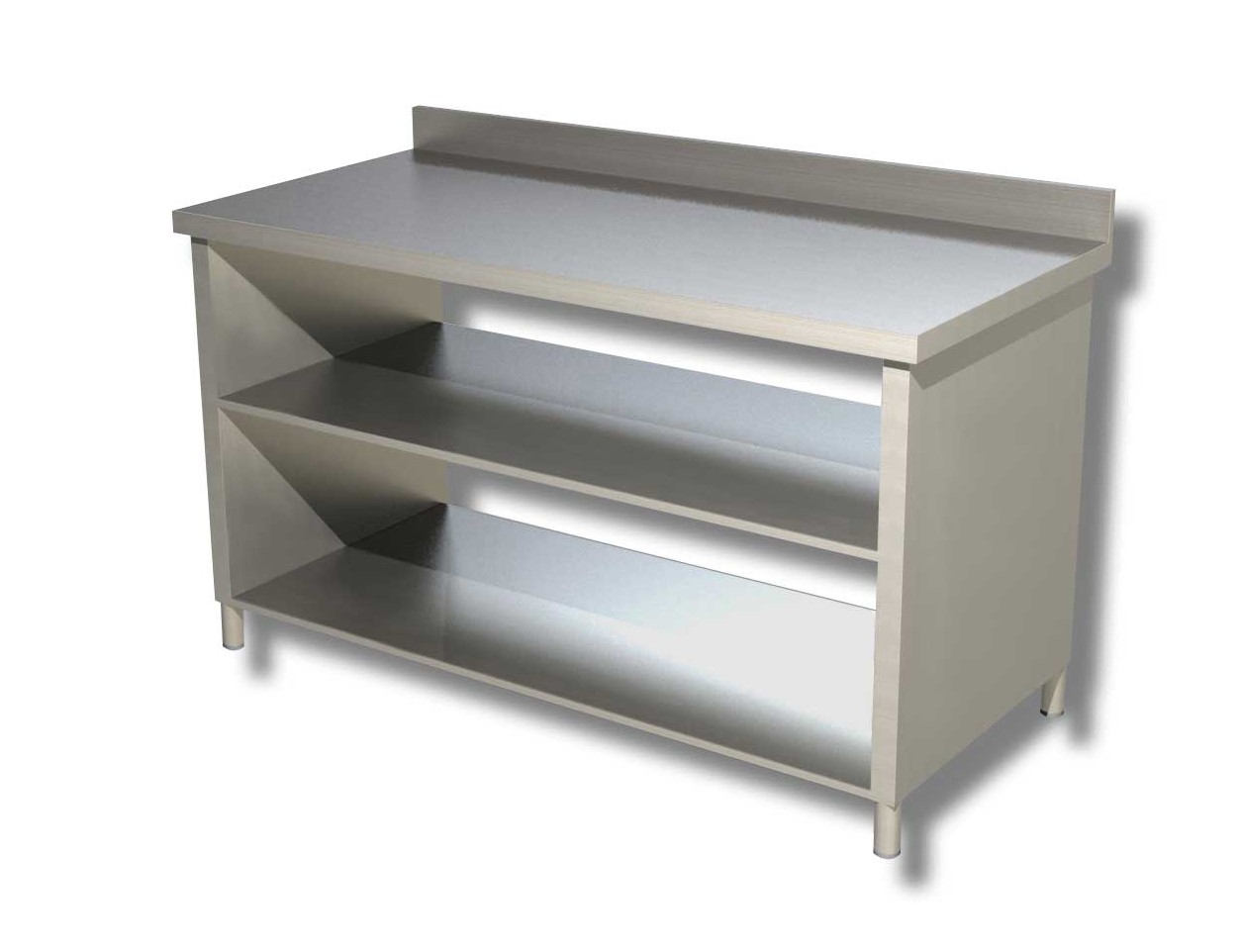 Meuble inox 430 de travail avec dosseret et 2 tablettes inférieures