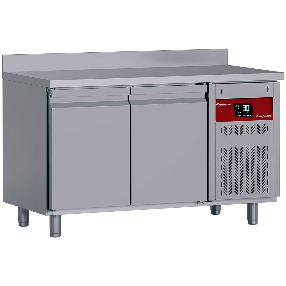 Table réfrigérée positive GN 1/1 inox avec 2 portes pleines battantes et dosseret 272 L - 1360 x 700 x 980 mm