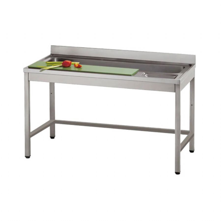 Table de préparation inox avec planche de coupe et bac - 700 x 2000 x 860 mm