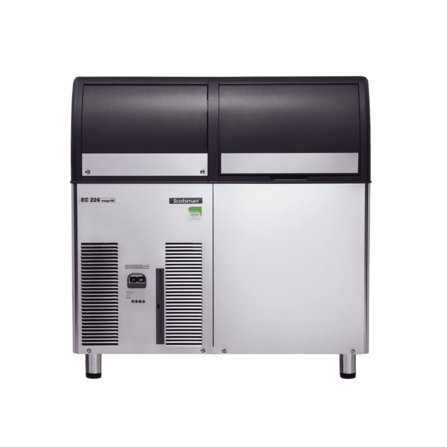 Construite en acier inoxydable, cette machine est conçue pour un usage intensif et professionnel. Le système de condensation par air assure un fonctionnement performant et régulier, tandis que la régulation électronique avec témoins de maintenance en façade simplifie le suivi et la prévention des interventions techniques. Le filtre à air est amovible et lavable, ce qui facilite l’entretien et garantit une hygiène optimale.