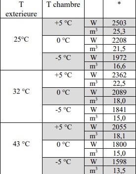 Ventilateurs évaporateur : 2x254 mm – Débit : 1300 m³/h