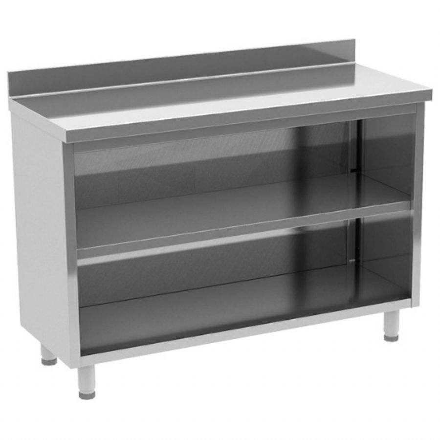 Meuble bas inox ouvert adossé avec porte coulissante - 1600x700x850 mm