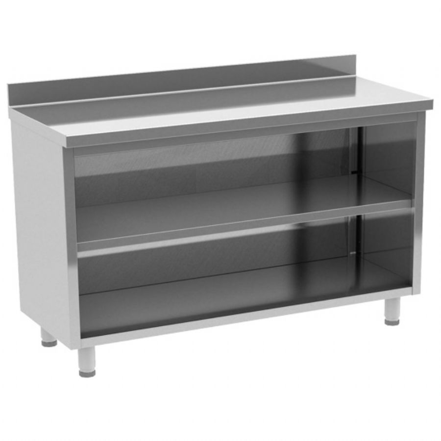 Meuble bas inox ouvert adossé avec porte coulissante - 1600x700x850 mm