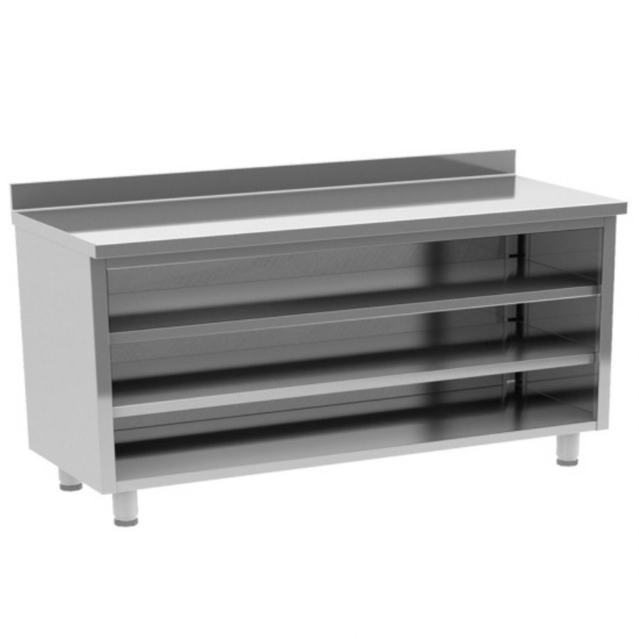 Meuble bas inox ouvert adossé avec porte coulissante - 1600x700x850 mm