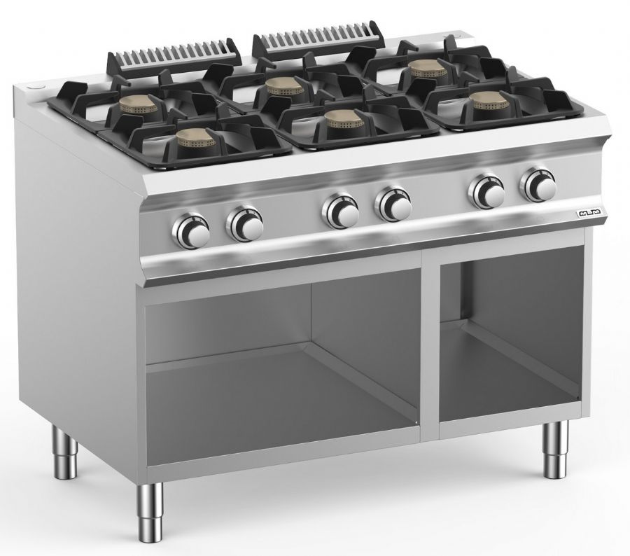 Fourneaux gaz 6 feux vifs sur meuble ouvert - 1200x700x910 mm