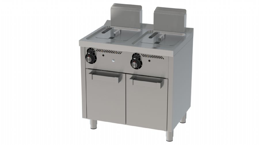 Friteuse à gaz professionnelle sur placard avec portes 2 cuves 8 + 8 litres - 15,4 kW - 800x600x1022 mm