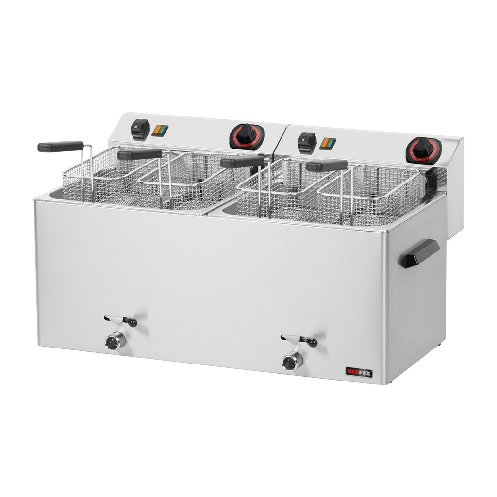 Friteuse à poser électrique inox avec vanne de vidange 2x8 litres - 580x550x410 mm