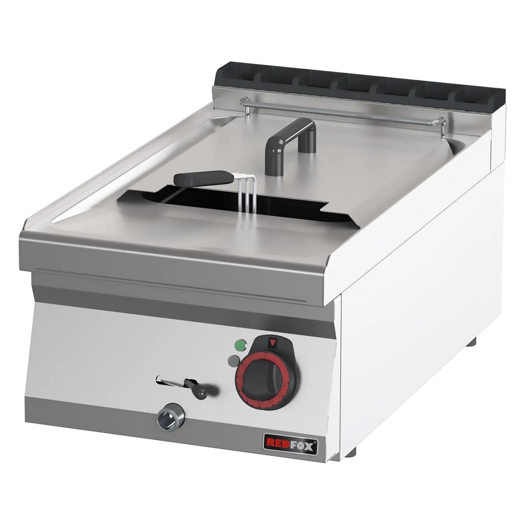 Pour un poste de friture compact mais productif, cette friteuse électrique de comptoir sans meuble REDFOX, réf. FE 70/04 E, trouve facilement sa place en snack, brasserie, restauration traditionnelle ou point de vente à emporter. Avec sa cuve de 13 L (300 x 336 x 200 mm) et son panier 280 x 295 x 100 mm, elle permet d’enchaîner frites, beignets ou produits panés sur un service du midi bien chargé, tout en restant dans un encombrement maîtrisé de 400x700x330 mm. La puissance de 12,5 kW en Triphasé offre une remontée en température rapide entre 50 °C et 190 °C, adaptée au coup de feu comme au maintien en service continu. L’implantation en équipement à poser avec pieds réglables facilite l’organisation du poste et le travail à hauteur confortable pour l’équipe, même avec un personnel peu expérimenté sur ce type d’appareil.
