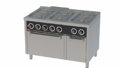 Fourneau professionnel à gaz sur four électrique gn 2/1 avec 6 brûleurs 3x7,5 + 3x5,5 kW - 1200x750x880 mm