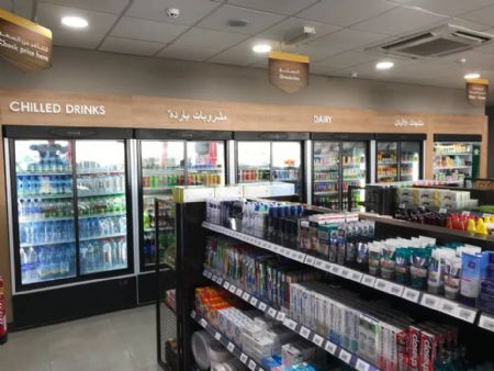 Portes vitrées coulissantes à fermeture automatique, Éclairage interne vertical LED, Tablettes ajustables, Revêtement interne laqué, Pieds ajustables, Refroidissement ventilé