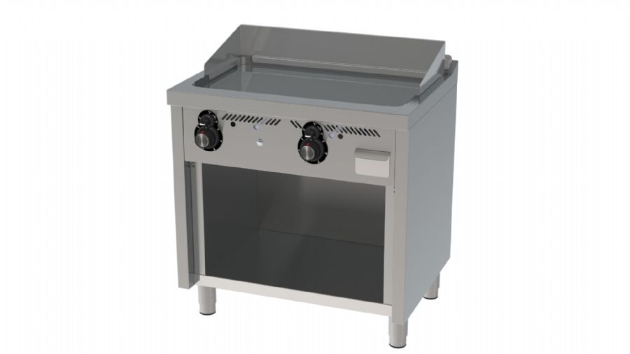 Plaque à snacker professionnelle sur placard ouvert à gaz chromée 12,5 kW - 800x600x945 mm