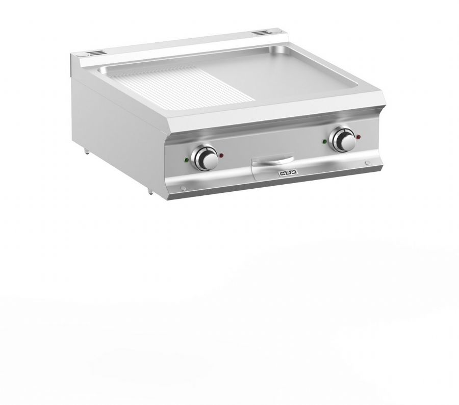 Plaque grill triphasé professionnelle 1 zone lisse 1 zone rainurée sur coffre ouvert - 800x700x850 mm