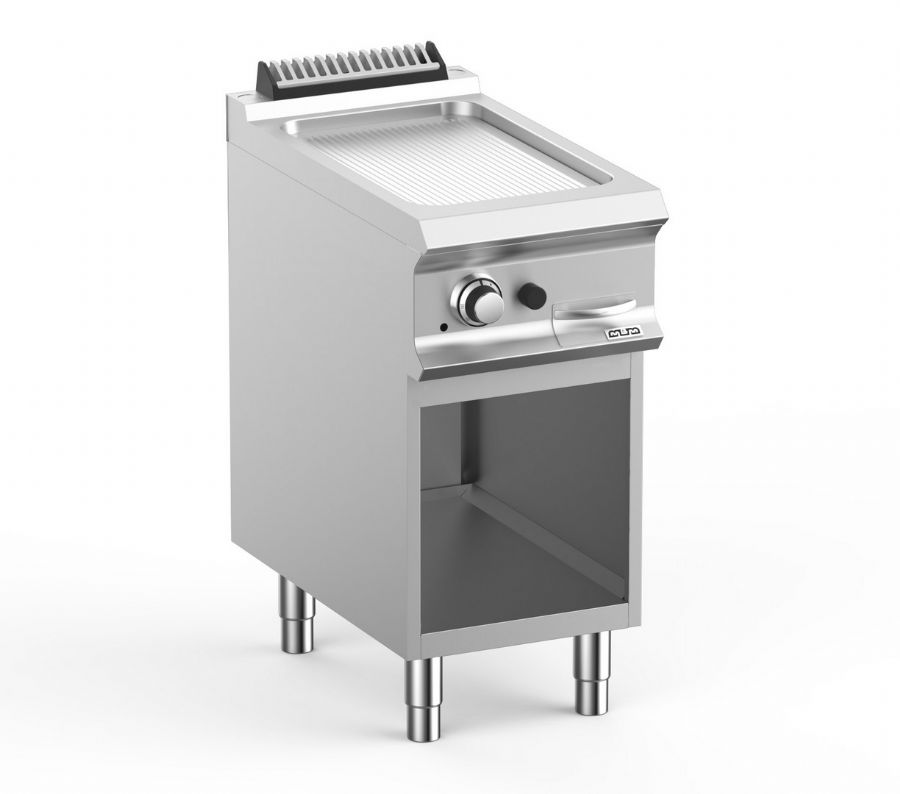Plaque grill gaz 1 zone rainurée sur meuble ouvert - 400x700x850 mm