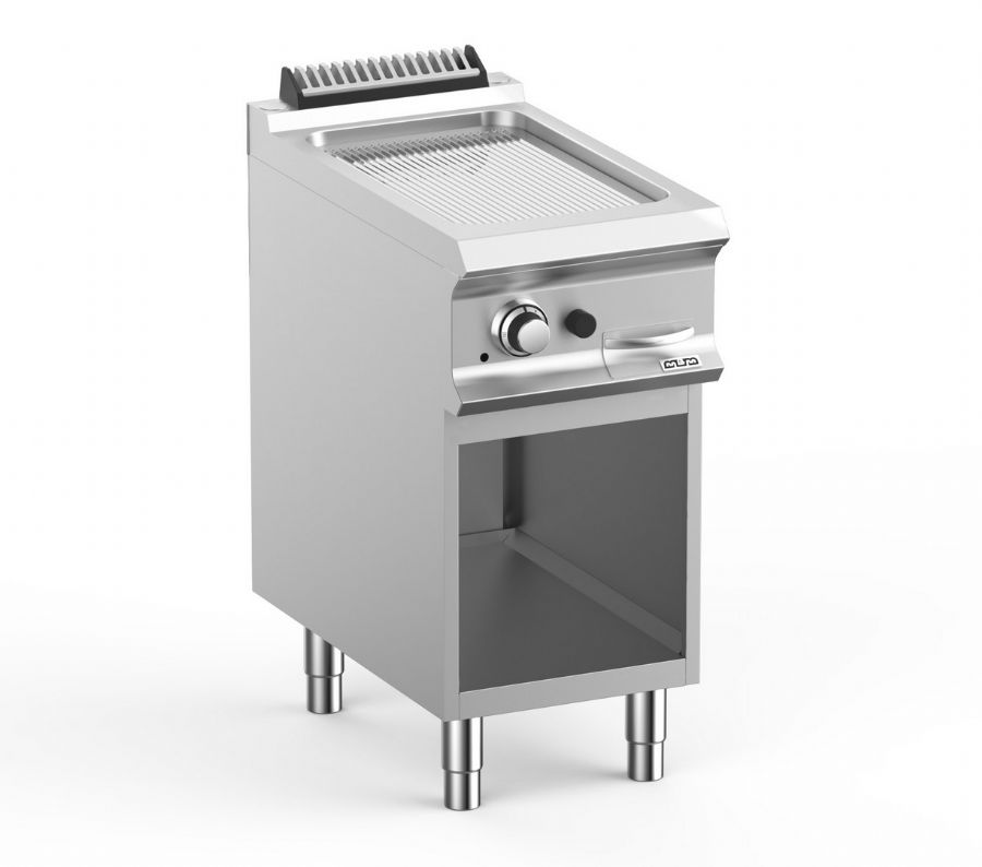 Plaque grill gaz 1 zone rainurée sur meuble ouvert - 400x700x850 mm