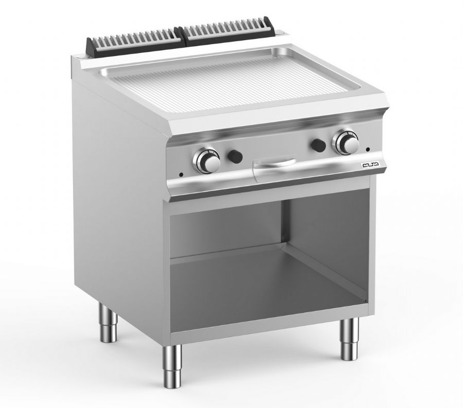 Plaque grill triphasé professionnelle 1 zone lisse 1 zone rainurée sur coffre ouvert - 800x700x850 mm
