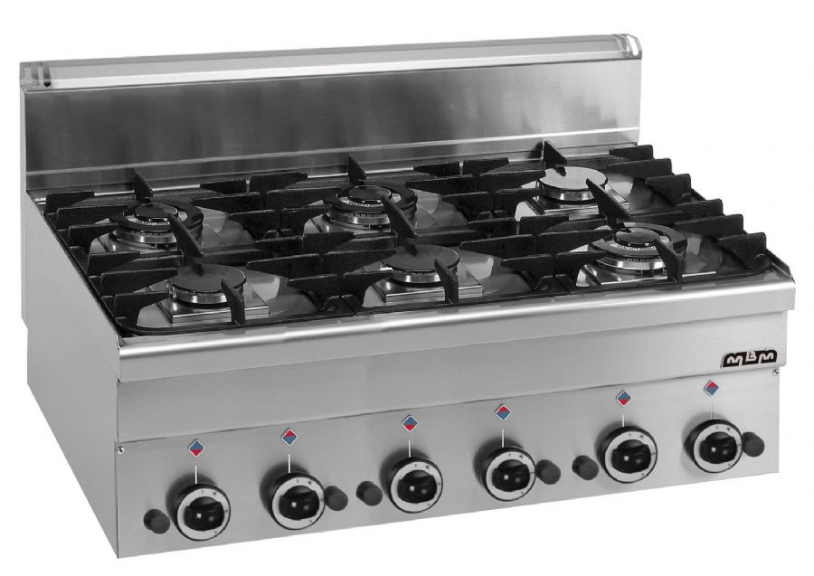 Cuisinière gaz à feux vifs 6 bruleurs à poser - profondeur 600mm