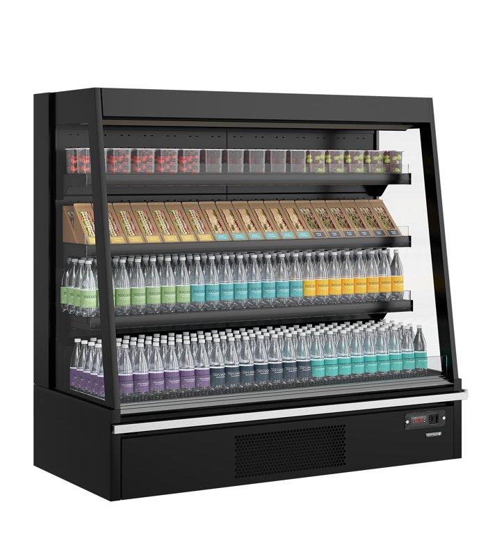 Vitrine réfrigérée positive ouverte toute noire avec 2 étagères - 915 x 640 x 1540 mm