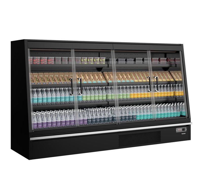 Vitrine noire réfrigérée positive pour supermarché 4 portes -1 à +5 °C - 2580x750x2005 mm