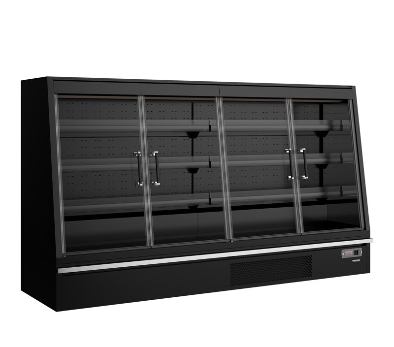 Vitrine réfrigérée positive pour supermarché toute noire avec 4 portes vitrées battantes 1540 L - 2600 x 920 x 2035 mm