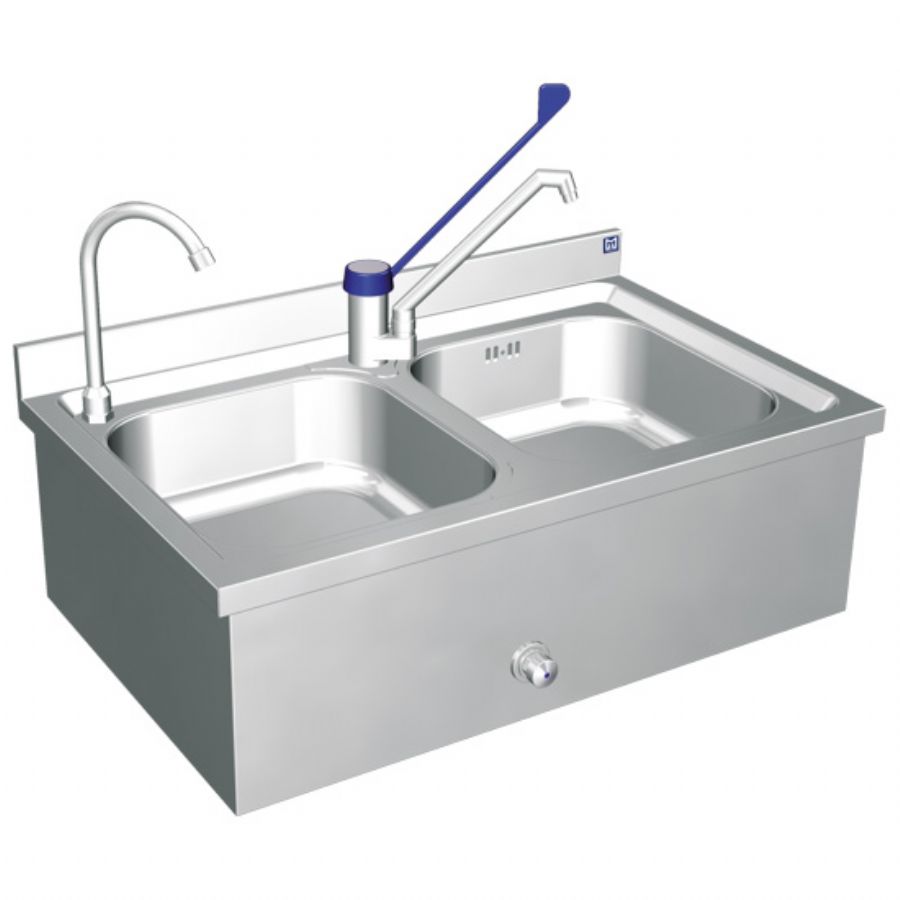 Lave-mains mural inox 2 bacs commande genou 506 x 800 x 256 mm