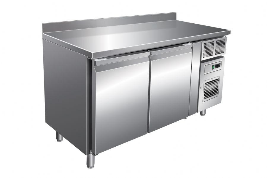 Table réfrigérée inox positive avec évaporateur ventilé - 2 portes - 228 litres - Avec dosseret - SN2201X