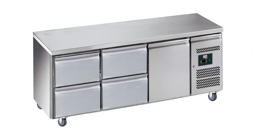 Table desserte réfrigérée inox centrale -2/+8°c avec 1 porte et 2x2 tiroirs