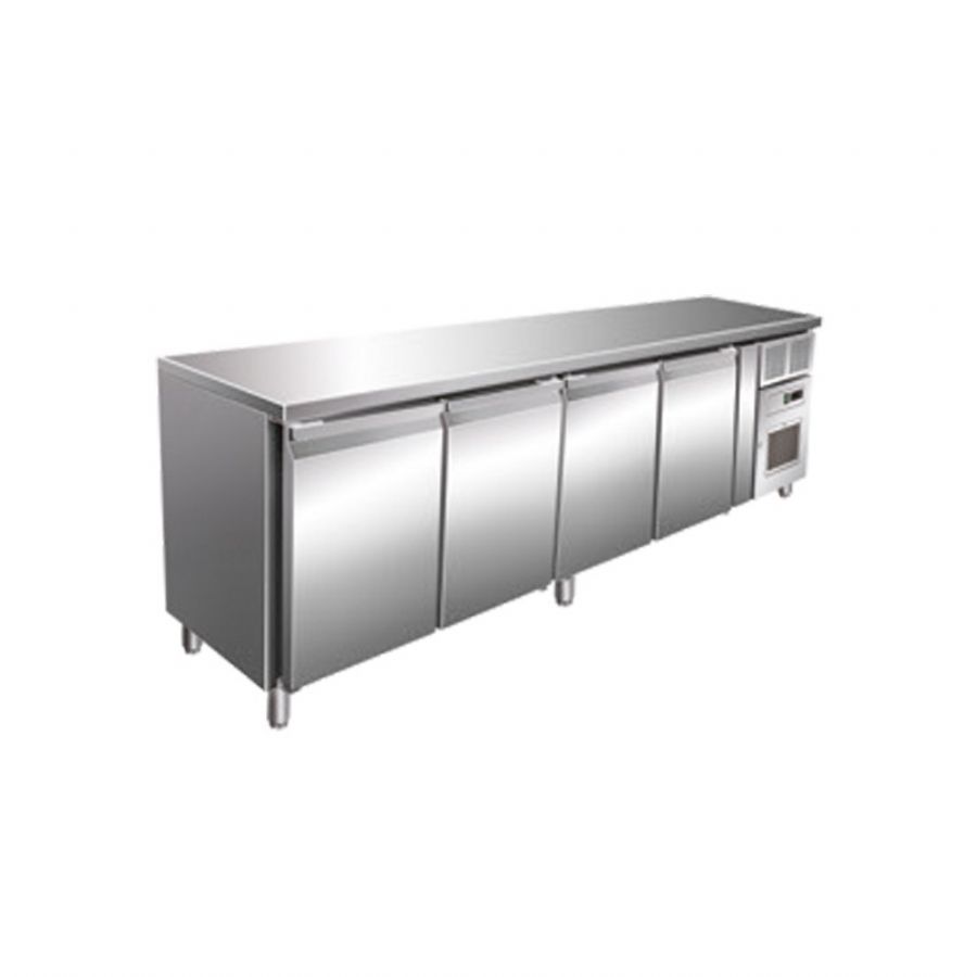 Table réfrigérée inox positive avec évaporateur ventilé - 4 portes - 449 litres - Sans dosseret - SN4101X