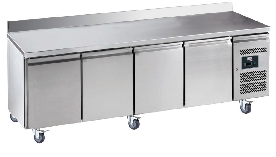 Table desserte réfrigérée avec dosseret 100x20 mm -2/+8°c avec 4 portes 600x400 - 616 litres