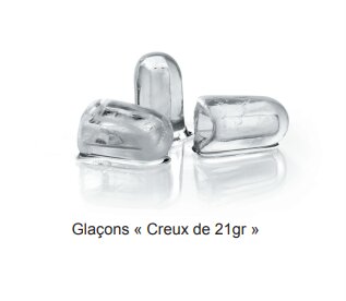Nombre de glaçons : environ 1190 glaçons creux par jour.