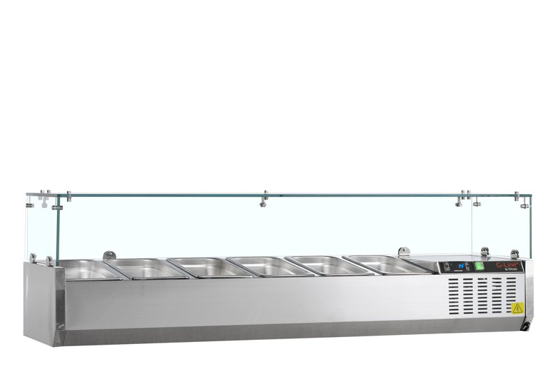 Vitrine à ingrédients positive avec pare-haleine pour 6 bacs GN 1/4 - 1495x336x436 mm