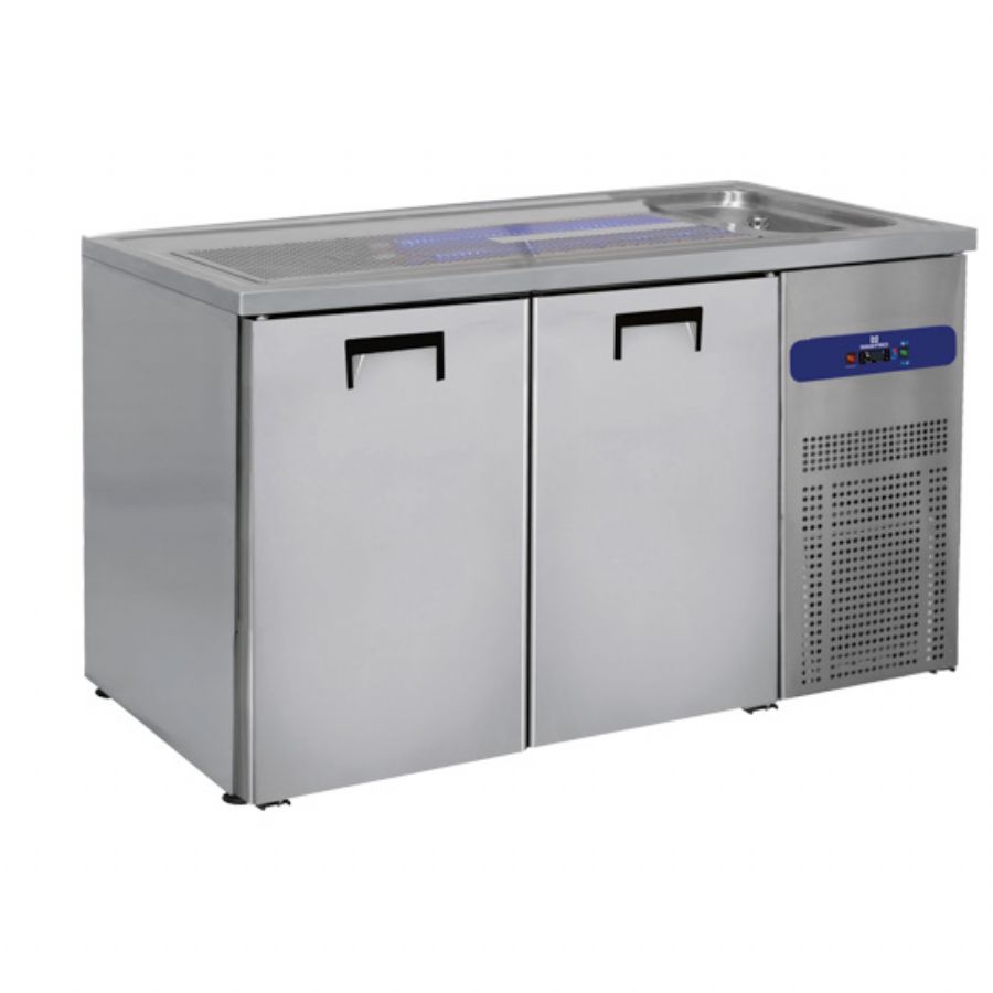 Comptoir réfrigéré inox 2 portes pour fûts 50 L avec plage de température -2/+8°C