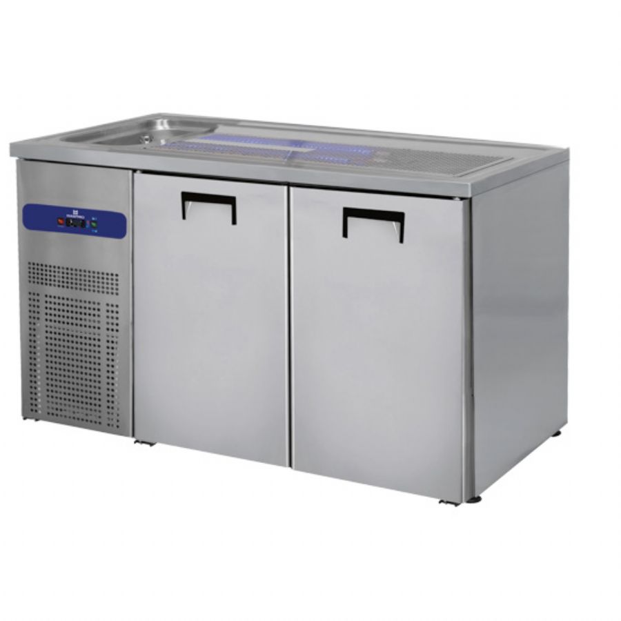 Comptoir réfrigéré inox 2 portes pleines plage de température -2/+8°C - 700 x 1550 x 960 mm