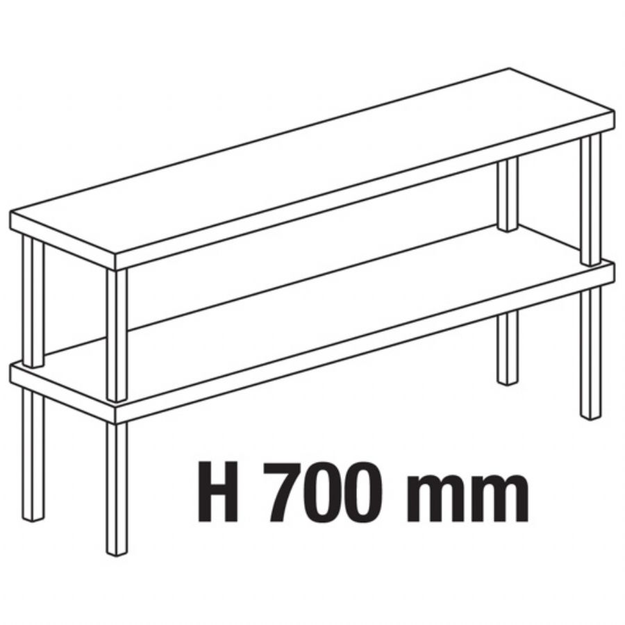 Ses deux niveaux en longueur 2000 mm et profondeur 300 mm permettent de séparer vaisselle, condiments ou bacs gastro, pour un service fluide en zone de dressage, de plonge ou de préparation froide, tout en gardant chaque poste dégagé et sécurisé.