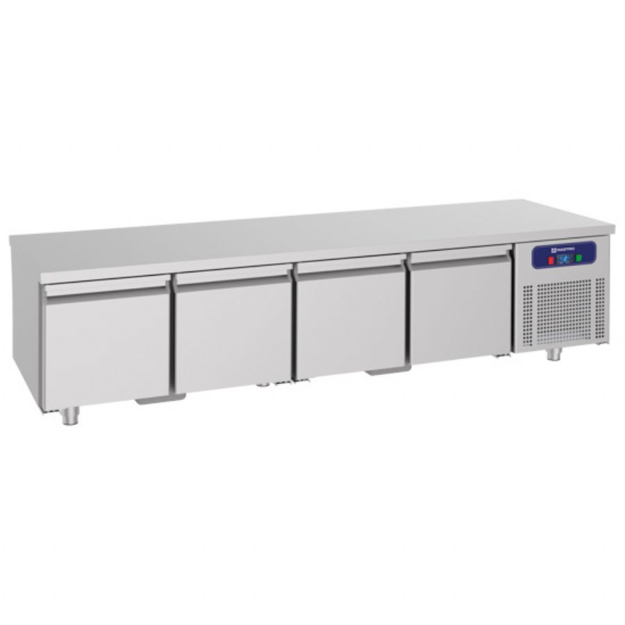 Soubassement réfrigéré positive sous-comptoir inox avec 4 portes pleines battantes GN 1/1 sans dosseret - 2230 x 700 x 670 mm
