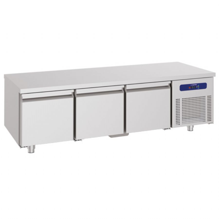Soubassement réfrigéré positive sous-comptoir inox avec 3 portes pleines battantes GN 1/1 sans dosseret - 1795 x 700 x 670 mm