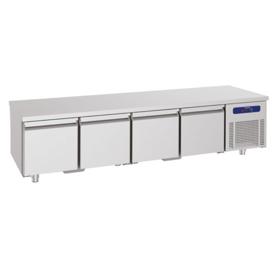 Soubassement réfrigéré positive sous-comptoir inox avec 4 portes pleines battantes GN 1/1 sans dosseret - 2230 x 700 x 670 mm