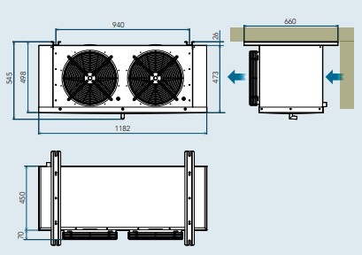 | Ventilateur pour l'évaporateur (n° x diamètre) | 2x350 |