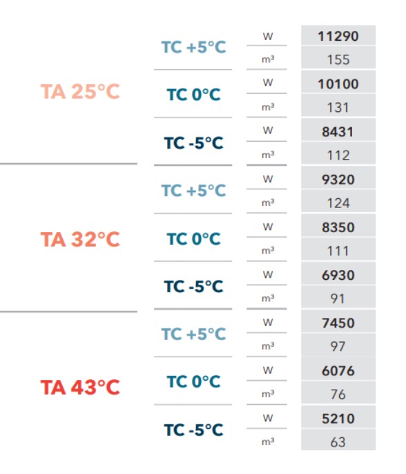 Flux d'air condensateur (m3/h): 5023.0