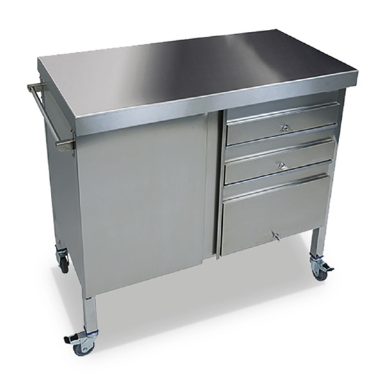 Chariot de service inox 1 porte 3 tiroirs sur roulettes 600 x 1000 x 930 mm