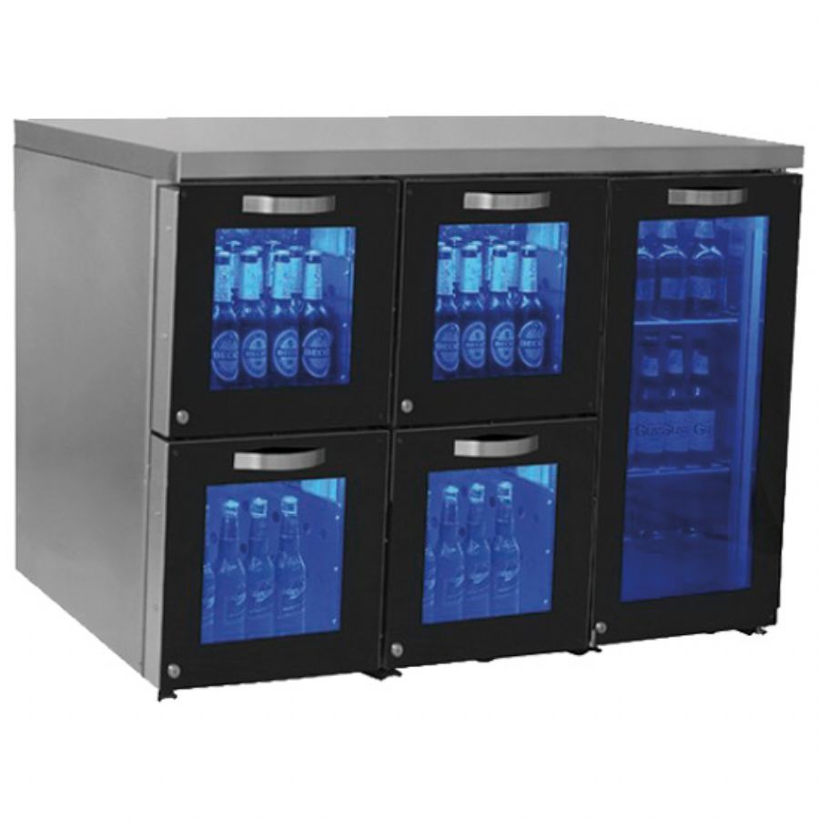 Pensé pour les bars, hôtels et établissements à fort débit, le Réfrigérateur bar gauche 1 porte battante vitrée avec 4 tiroirs en verre 120 bouteilles VIRTUS offre une organisation irréprochable pour vos boissons. Avec une capacité de 120 bouteilles/canettes et une structure compacte de 500 x 1380 x 875 mm cm, cet arrière de bar combine présentation valorisante, rapidité de service et Résistance et durabilité maximisées. La référence IBC0068 s’intègre naturellement derrière votre comptoir tout en restant Adapté aux exigences du secteur CHR les plus intensives.