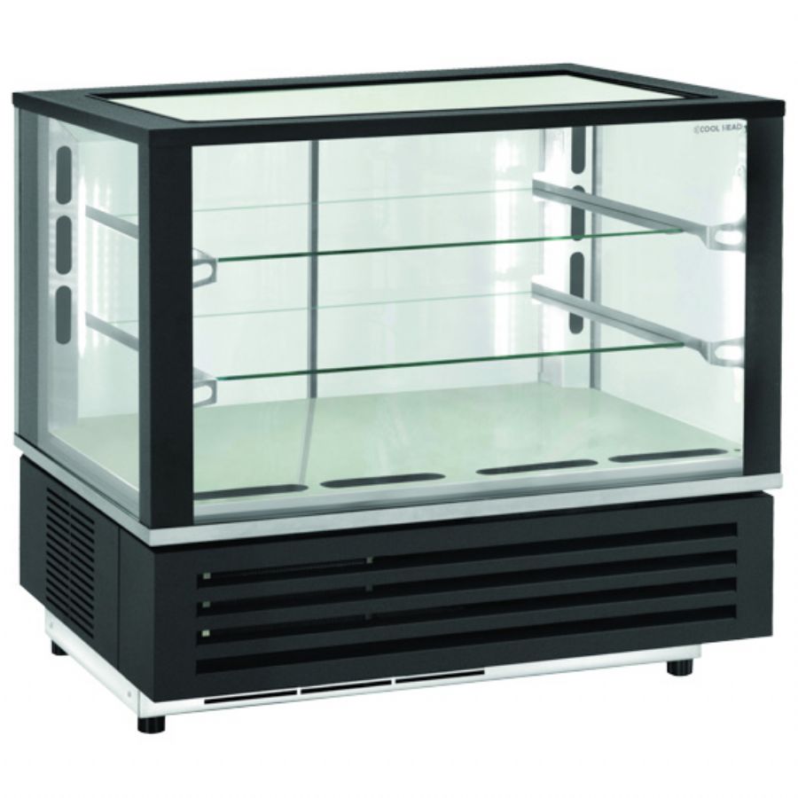 Vitrine comptoir réfrigérée plate noire avec 2 portes vitrées coulissantes - 905x800x1320 mm