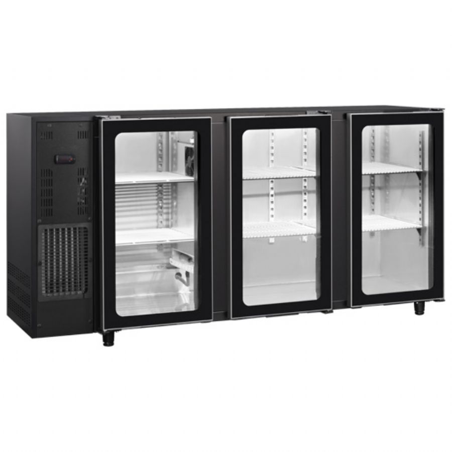 Réfrigérateur bar noir 3 portes vitrées battantes température -2/+8°C et volume 588 L