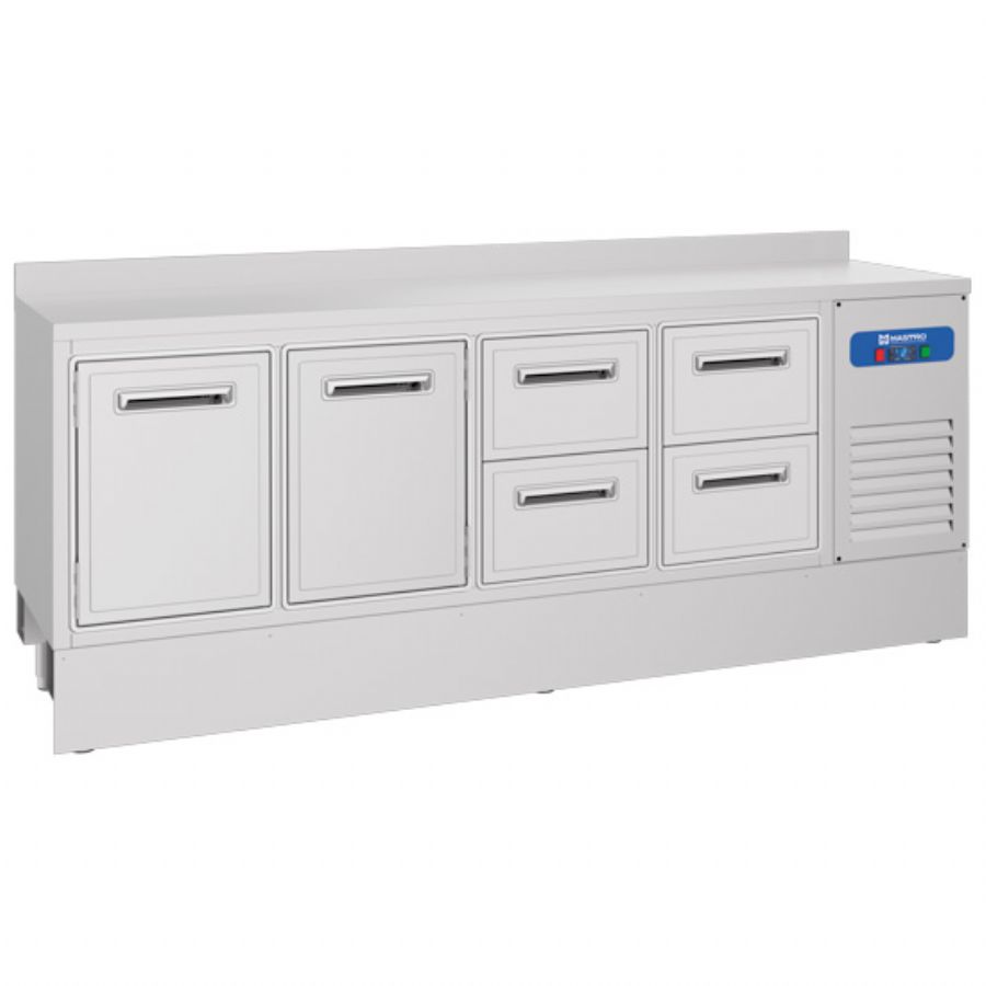 Comptoir bar froid inox 2 portes 4 tiroirs - température -2/+8°C avec volume 645 L