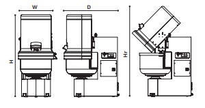 Dimensions (LxPxH) (mm) : 700 x 980 x 1500 Capacité de pâte (min/max) (kg) : 5/48 Capacité de farine (min/max) (kg) : 3/30 Puissance (kW) : 2,2 Alimentation : Triphasée