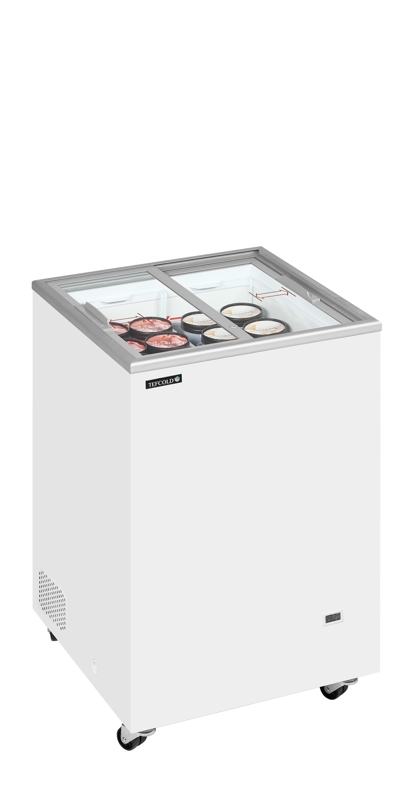 Congélateur bahut 91L avec 2 couvercles coulissants vitrés et plats