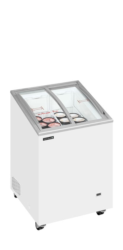 Congélateur bahut 85L avec 2 couvercles coulissants incurvés et vitrés