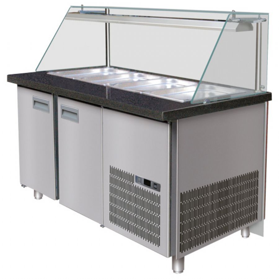 Table à pizza réfrigérée avec 2 portes GN 1/1 et dessus granite - saladette bacs GN 1/6 - 900x700x1100 mm
